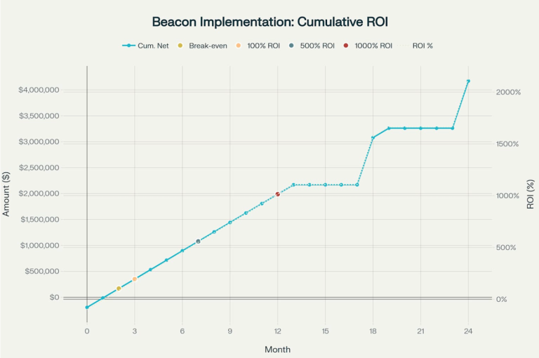 Hospitals that implement beacon-based tracking and automation report immediate operational impact—recovering lost time, reducing equipment rental costs, and optimizing department workflows. With a payback period of just over one month, the investment rapidly turns into a high-yield asset.
